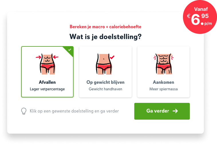 - Kies zelf het aantal gewenste eetmomenten per dag (3 tot 6)